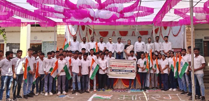 महाविद्यालयाचे प्राचार्य डॉ.एन.बी.मेहेत्रे यांच्या मार्गदर्शनाखाली हा कार्यक्रम राबवण्यात आला. यावेळी सर्वांनी एकजुटीने “वंदे मातरम्” हे गीत सादर करत भारतमातेप्रती आपले प्रेम,अभिमान आणि निष्ठा व्यक्त केली.वंदे मातरम् या गीताच्या १५० व्या वर्धापन दिनानिमित्त महाविद्यालयांमध्ये वेगवेगळे स्पर्धांचे आयोजन करण्यात आले होते त्यामध्ये निबंध स्पर्धा ,लोगो डिझाईन, कविता लेखन ,आणि रील मेकिंग अशा अनेक स्पर्धांचे आयोजन करण्यात आले होते. विद्यार्थ्यांनी या स्पर्धेमध्ये उत्स्फूर्त प्रतिसाद दिला.या कार्यक्रमासाठी समर्थ कृषी महाविद्यालयाचे विद्यार्थी तसेच प्राध्यापक वर्ग यांनी दीनदयाल हायस्कूल, देऊळगाव राजा येथे सुद्धा या सामूहिक गीत गायनामध्ये मध्ये उत्स्फूर्त प्रतिसाद आणि सहभाग दिला. कार्यक्रमाचे उद्दिष्ट विद्यार्थ्यांमध्ये राष्ट्रभक्तीची भावना दृढ करणे आणि मातृभूमीबद्दल आदर, अभिमान जागवणे हे होते. या निमित्ताने विद्यार्थ्यांना या गीताचा इतिहास, त्यामागील राष्ट्रभक्तीपूर्ण विचार आणि स्वातंत्र्य चळवळीत याचे योगदान याची माहिती देण्यात आली.संपूर्ण वातावरण “वंदे मातरम्”च्या सुरांनी भारावून गेले होते. हा उपक्रम सर्वांसाठी प्रेरणादायी ठरला. रा.से.यो. कार्यक्रम अधिकारी प्रा. वाय. एस. चगदळे, रा.से.यो. सह कार्यक्रम अधिकारी प्रा.ए. व्ही.जाधव तसेच प्रा.डी.पाटील, प्रा.ए.शेळके, प्रा.कवर, प्रा.व्ही.एस.पवार , प्रा. एस.सोळंकी,प्रा.घुगे व अंतरकर,शेख,सय्यद,काळुशे, विद्यार्थी मोठ्या संख्येने उपस्थित होते.