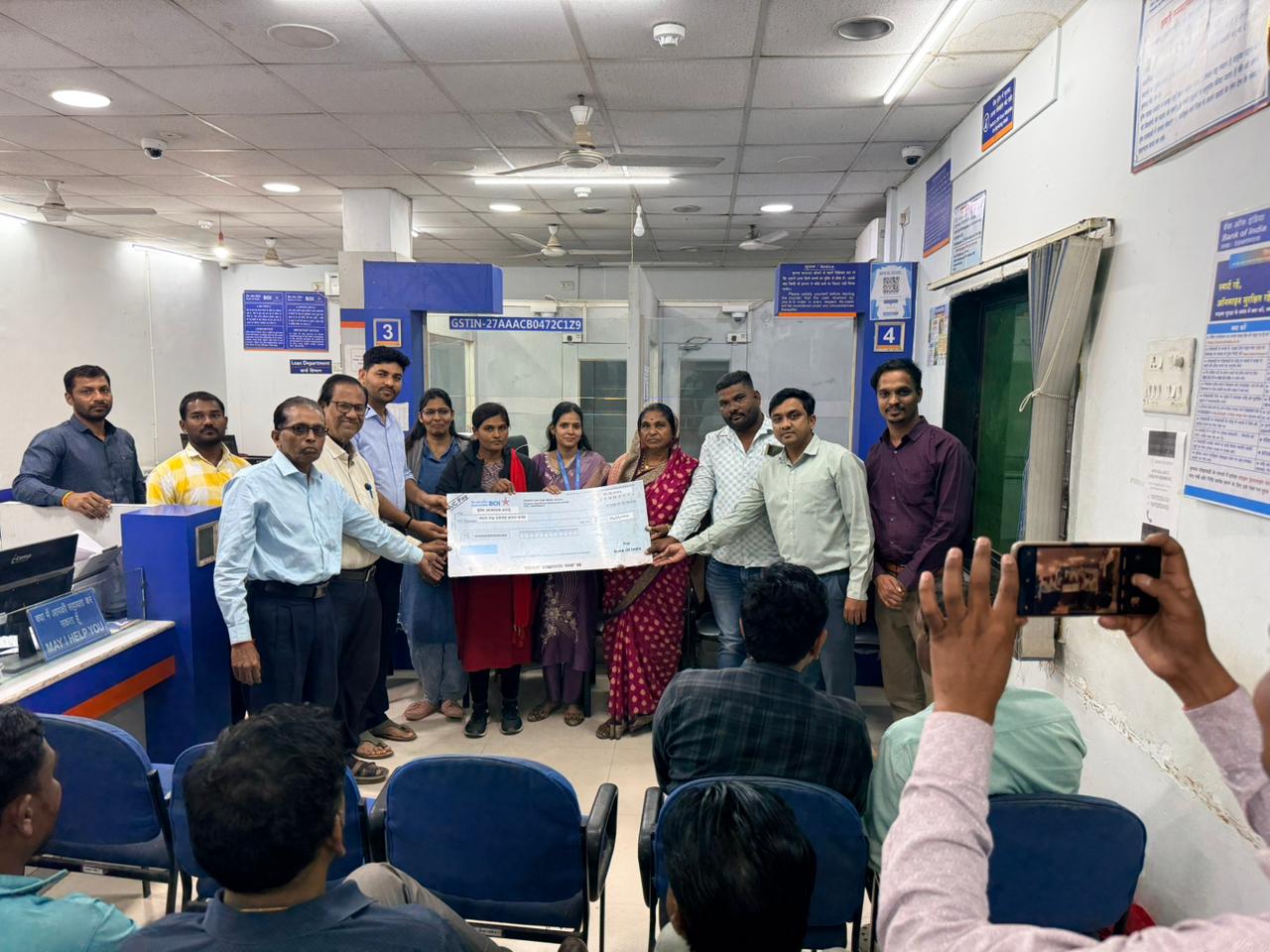 त्यानंतर दीपक सरोदे यांच्या वारसांना अपघाती विम्याची रक्कम मिळवून देण्यासाठी बँकेच्या वतीने इन्शुरन्स कंपनीकडे सातत्यपूर्ण पाठपुरावा केला. आज या विमा रकमेचा धनादेश बँक अधिकारी व इन्शुरन्स कंपनीच्या अधिकाऱ्यांच्या हस्ते मृतक दीपक सरोदे यांची आई पुष्पा आसाराम सरोदे, पत्नी माया दीपक सरोदे व अमोल पांडुरंग मुख्यदल यांना देण्यात आला.